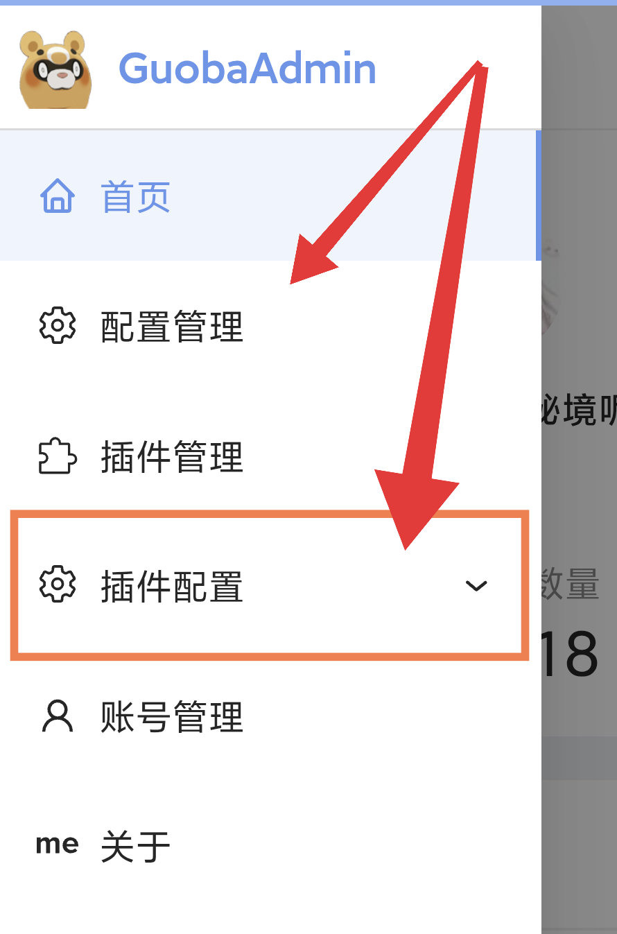 在面板左侧边栏有一个配置管理和插件配置,这分别对应了项目(本体)配置文件与插件配置文件
